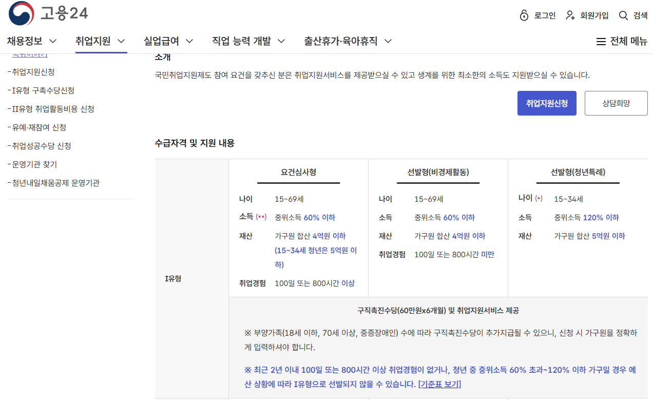 국민취업지원제도 1유형 2유형 비교 조건 신청 방법 총정리