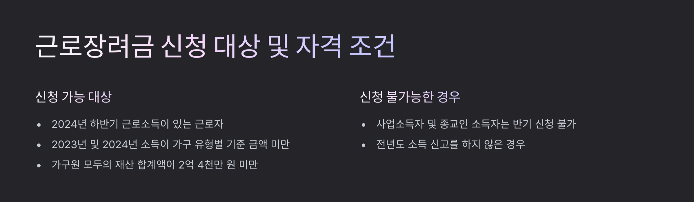 ✔ 소득 및 재산 요건을 초과할 경우 지급 대상에서 제외될 수 있음