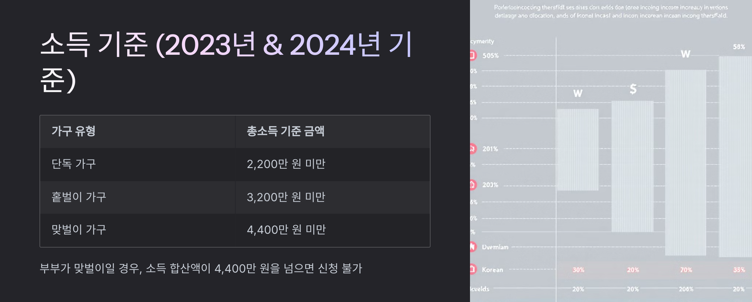📢 부부가 맞벌이일 경우, 소득 합산액이 4,400만 원을 넘으면 신청 불가