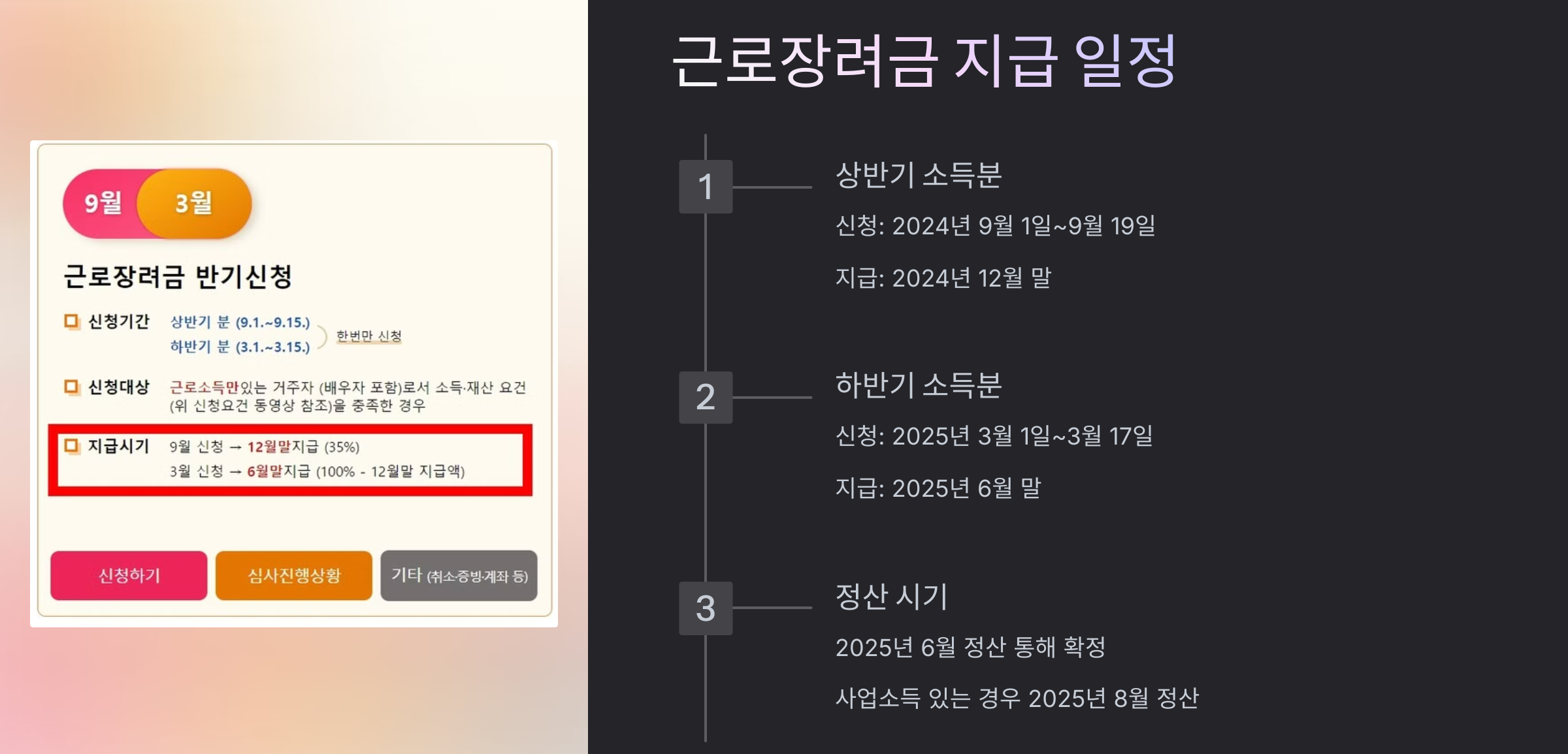 이번 포스팅에서는 근로장려금 반기 신청 대상, 신청 방법, 지급 일정, 주의사항까지