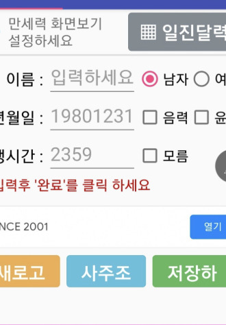 입력을 마치면 [만세력 보기] 버튼을 클릭하세요.