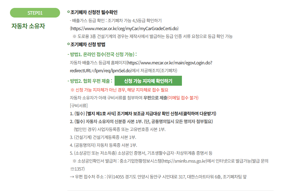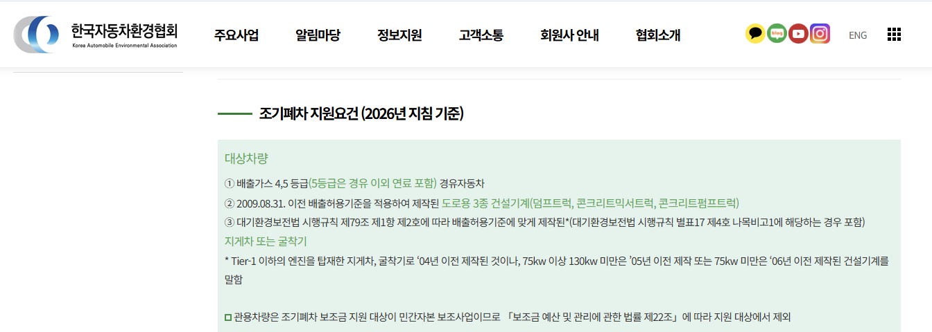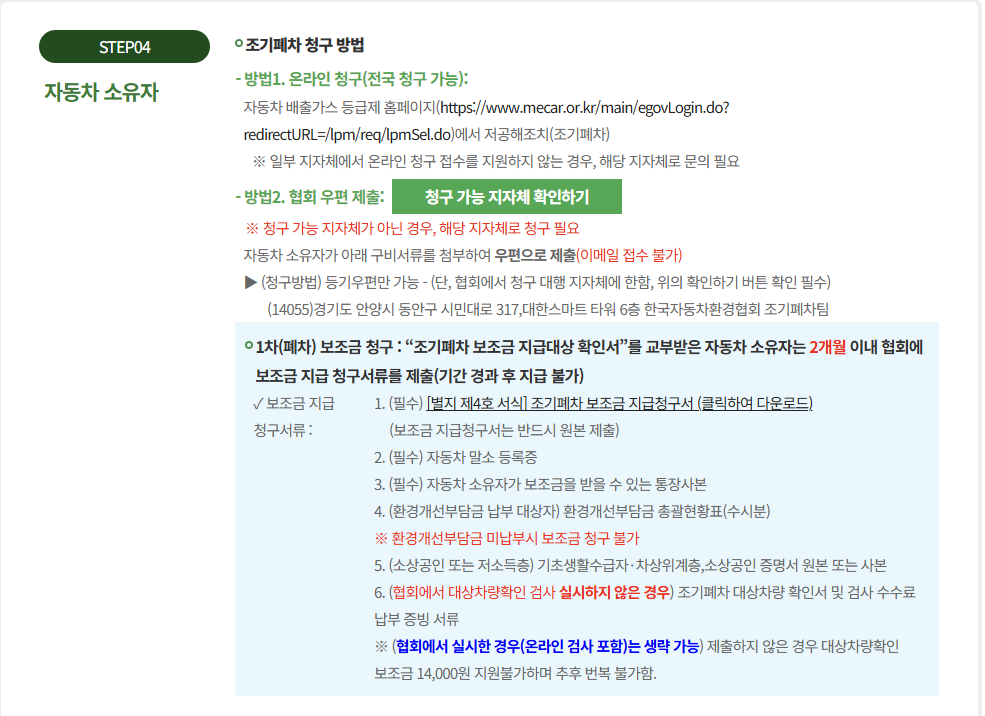 - 동일 차량으로 이미 조기폐차 지원금을 받은 이력이 없어야 함