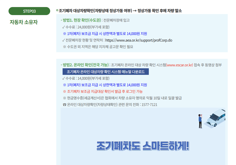 - 지정 폐차장에서 차량 폐차