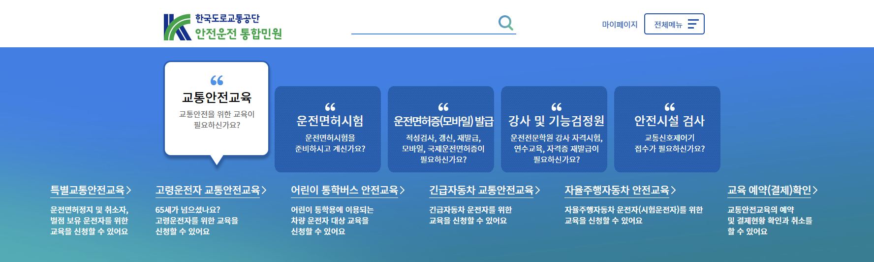 도로교통공단 안전운전 통합민원 홈페이지 바로가기 안내