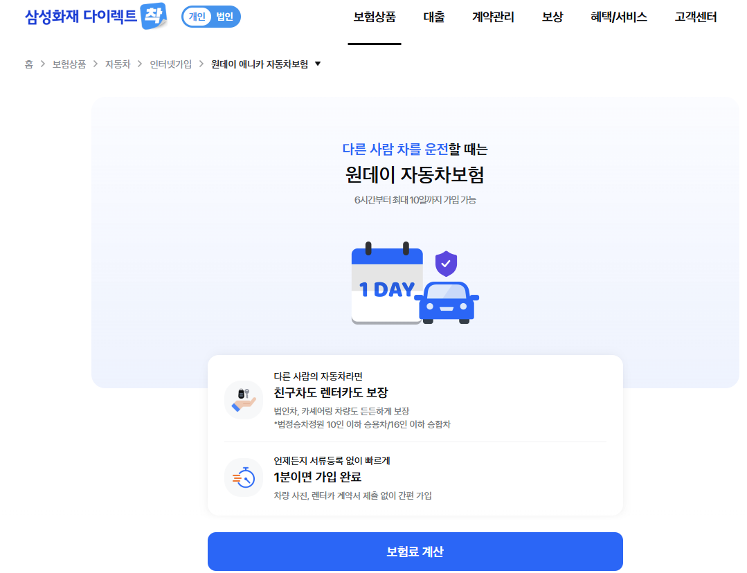 삼성화재 1일 자동차보험이란