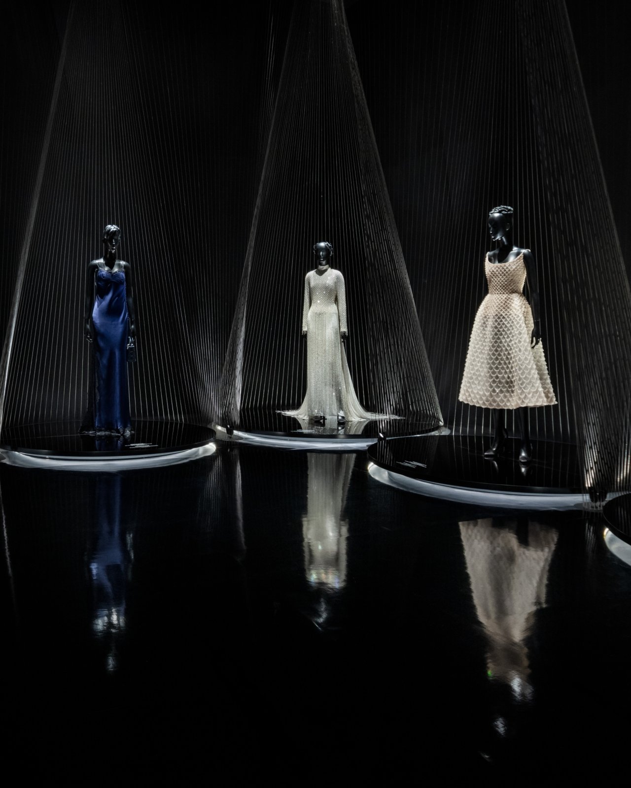 - 디올 볼(Dior Ball): 전시의 하이라이트 중 하나로, 경사진 구조물 위에 드레스를 전시하여 관람객이 위아래에서 다양한 각도로 감상할 수 있는 공간이 마련되어 있습니다