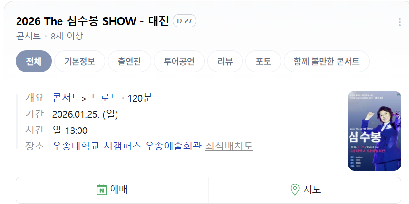 - 검색 결과에서 대전 공연 (1월 25일) 선택