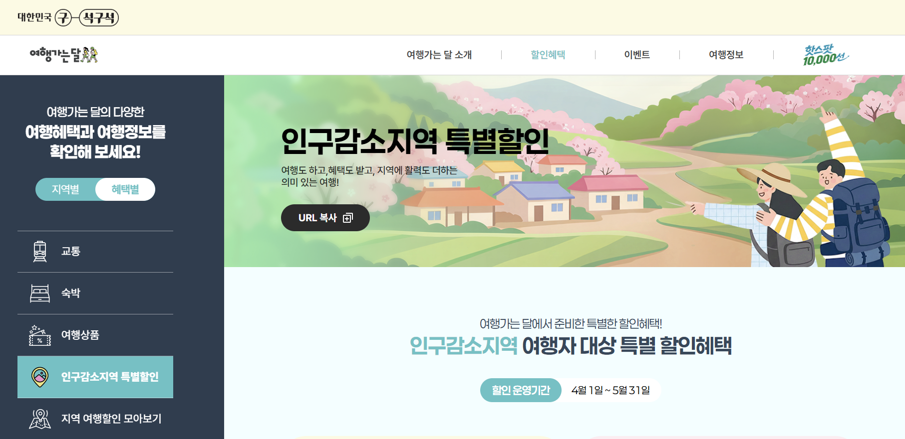 4월~5월 한정으로 진행되는 인구감소지역 여행경비 50% 지원은 여행 비용 부담을 크게 줄일 수 있는 실질적인 혜택입니다.