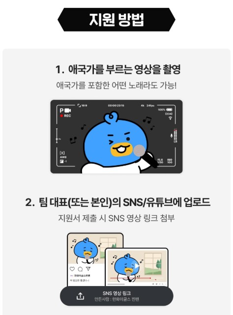 - 애국가를 부르는 영상을 촬영 (개인 or 팀)