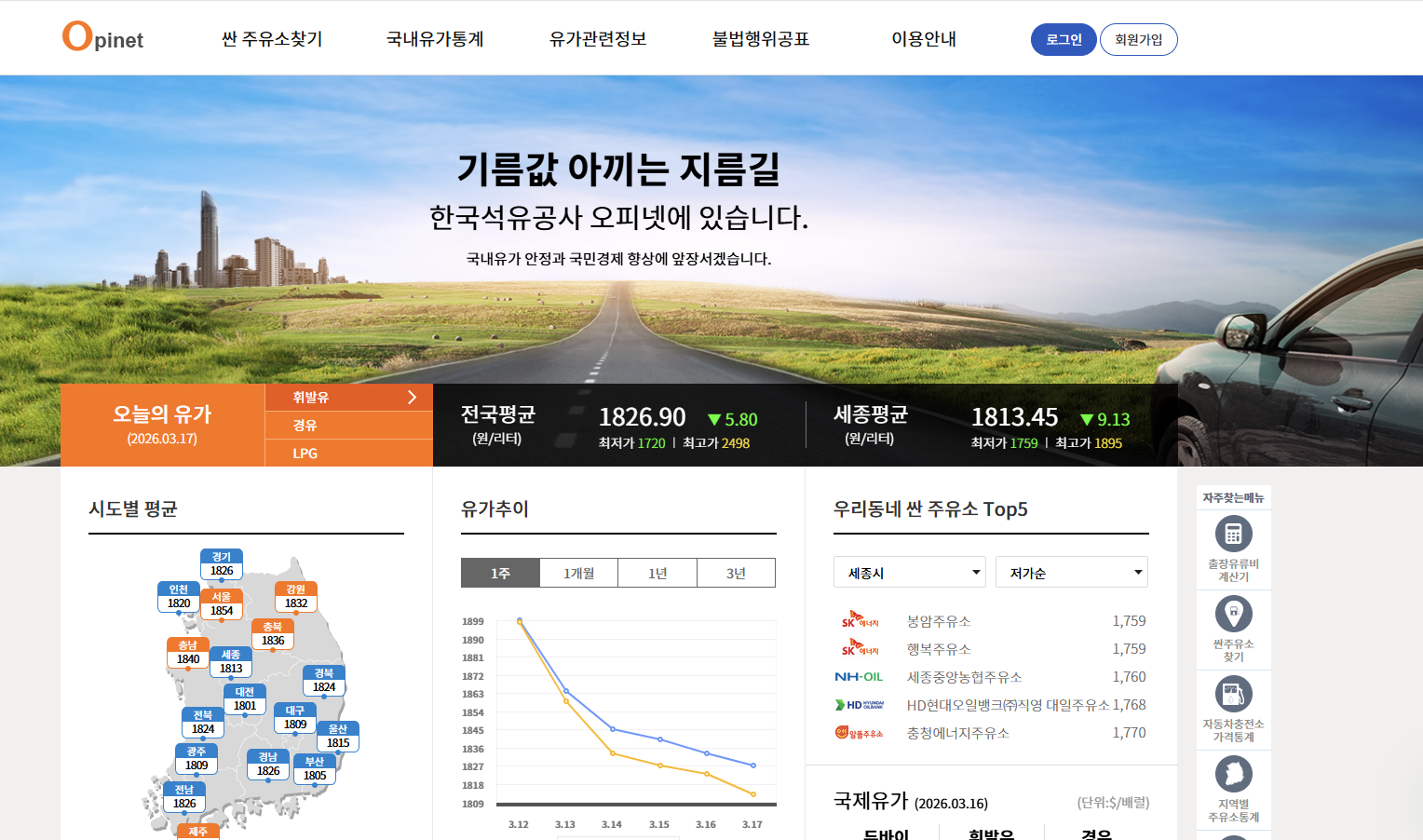 오피넷으로 전국 최저가 주유소 찾기
