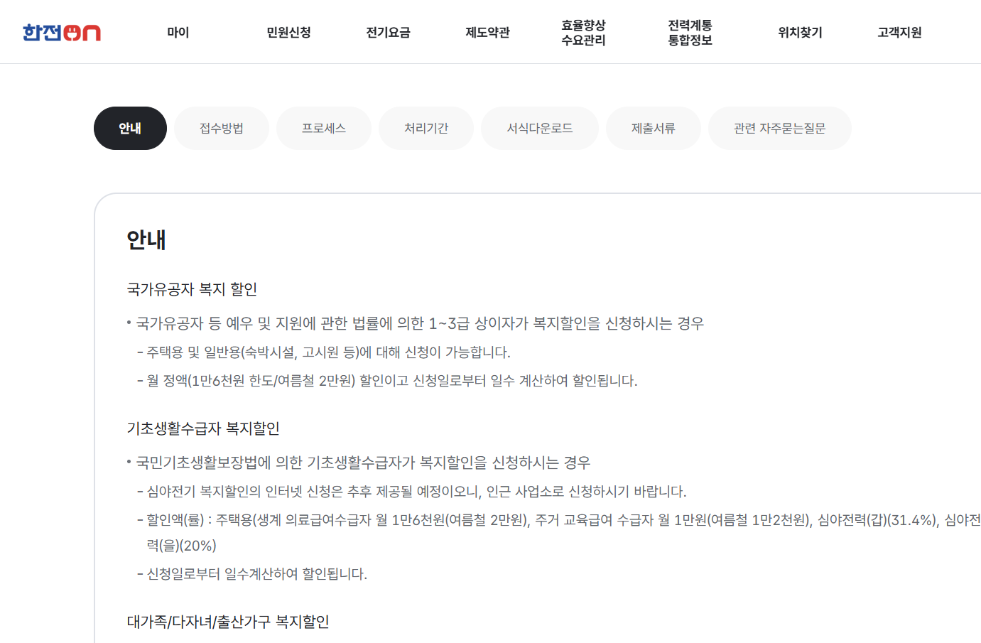 온라인 신청을 하면 확인 후 다음 전기요금 고지서부터 할인 적용이 시작됩니다.