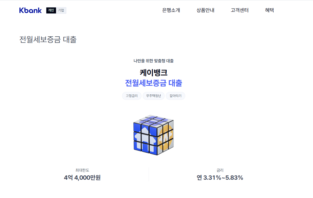 | 상품명 | 케이뱅크 고정금리 전월세보증금 대출 |