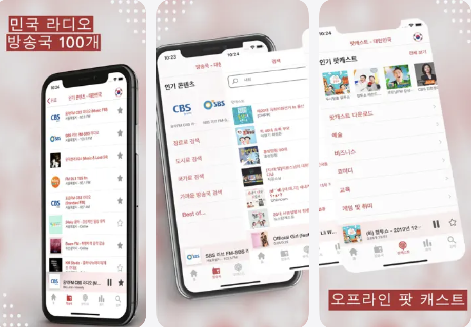 - 🎵 음악, 뉴스, 시사, 종교, 스포츠 등 다양