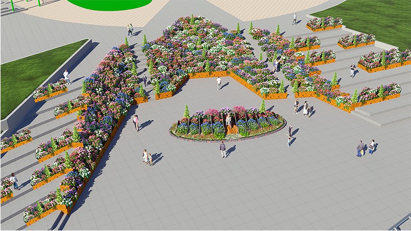 - 구성: 대형 화훼 조형물 + 캐릭터 색에 맞춘 꽃 식재