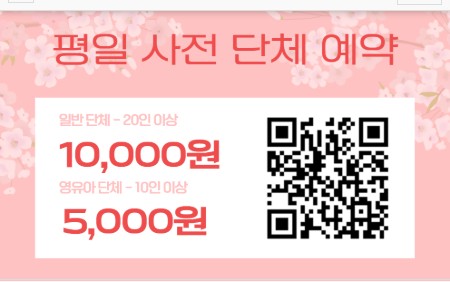 | 단체권 | 일반단체 | 10,000원 | 20인 이상, 사전 예약 평일 단체만 해당 |