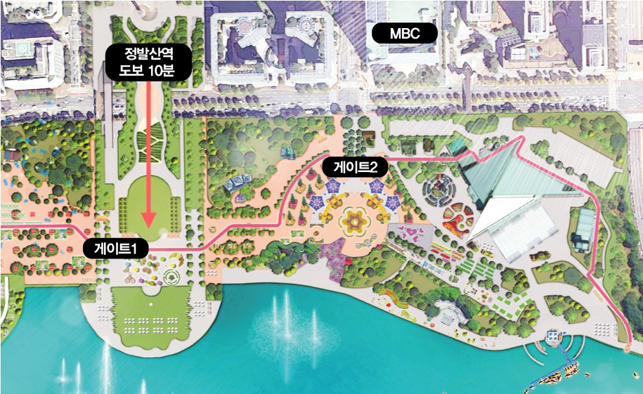 - 야외 전시 후 → 실내 전시 → 공연 → 플라워 마켓 순 추천