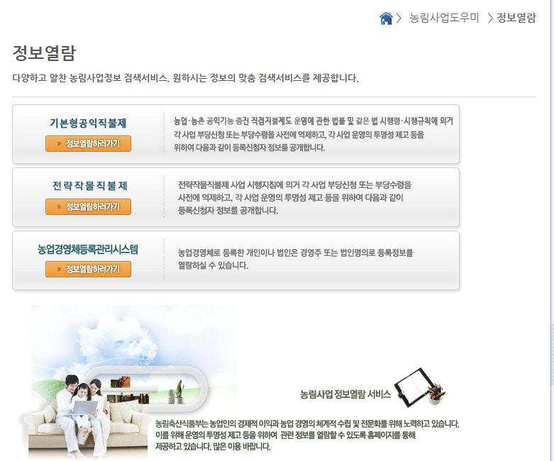 농림사업정보시스템 홈페이지에 접속하면 직불금 신청 내역과 진행 상태를 확인할 수 있습니다.