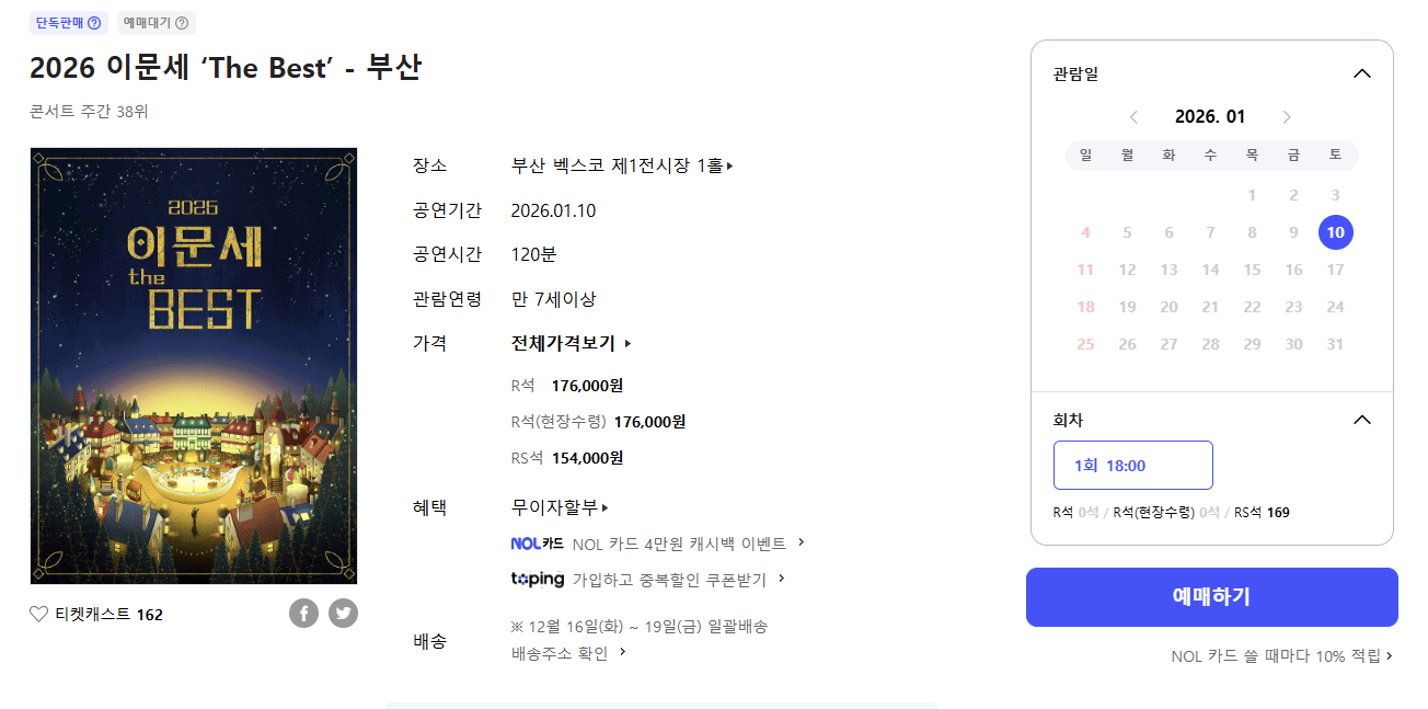 감동적인 라이브로 새해를 열고 싶다면 2026 이문세 ‘The Best’ – 부산 콘서트는 충분히 고려해볼 만한 선택입니다. 좌석 상황과 혜택을 미리 확인하고, 가장 만족스러운 자리에서 그 순간을 직접 느껴보세요.
