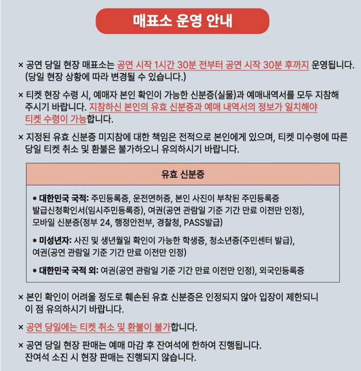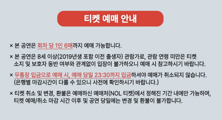 - 예매처: NOL 티켓 고객센터 (1544-1555)