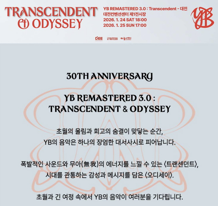 대한민국 록 음악을 대표하는 밴드 **YB**가 2026년 1월, 대전에서 단독 콘서트를 개최합니다.